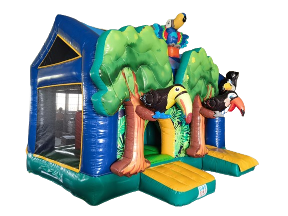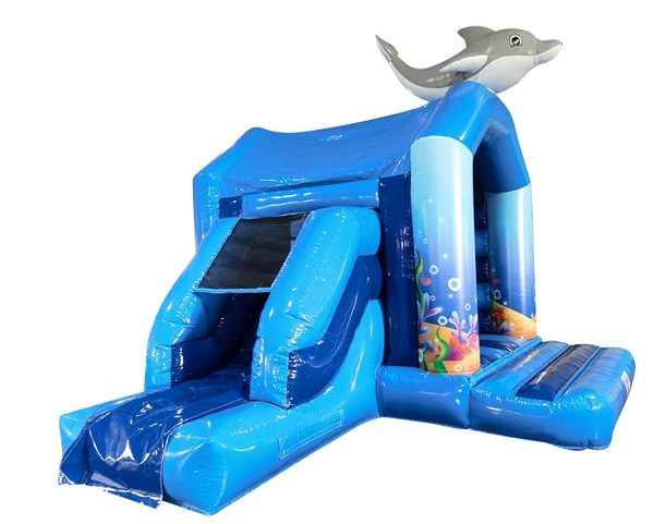 Springkussen Dolfijn met glijbaan en dak 4,5x5 m