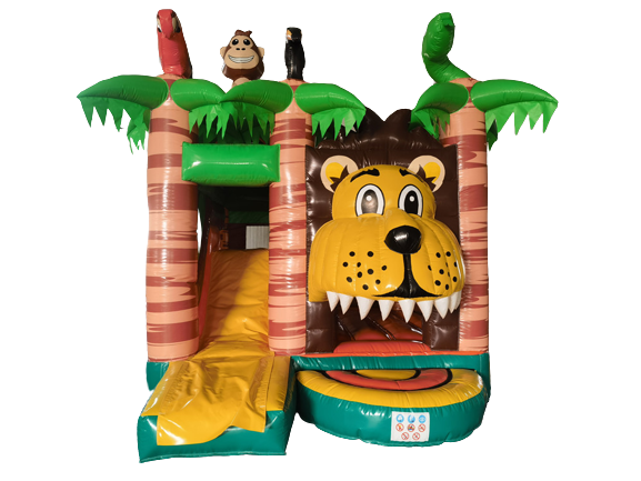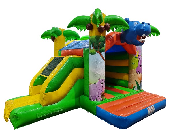 Springkussen Nijlpaard met glijbaan en dak - 5x4,5m