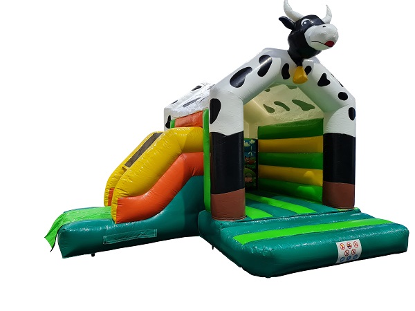 Springkussen Koe met glijbaan en dak 5x4,5m